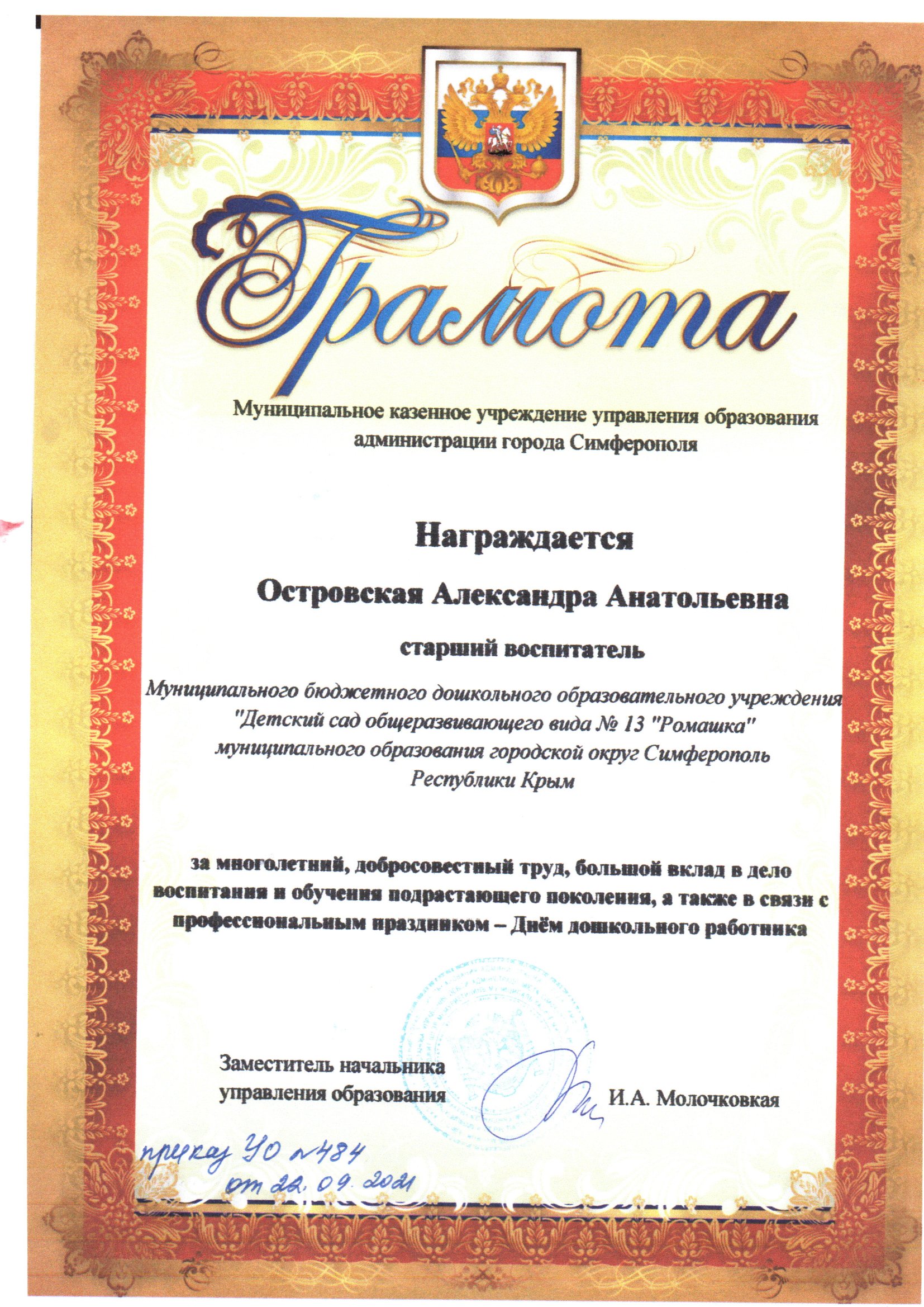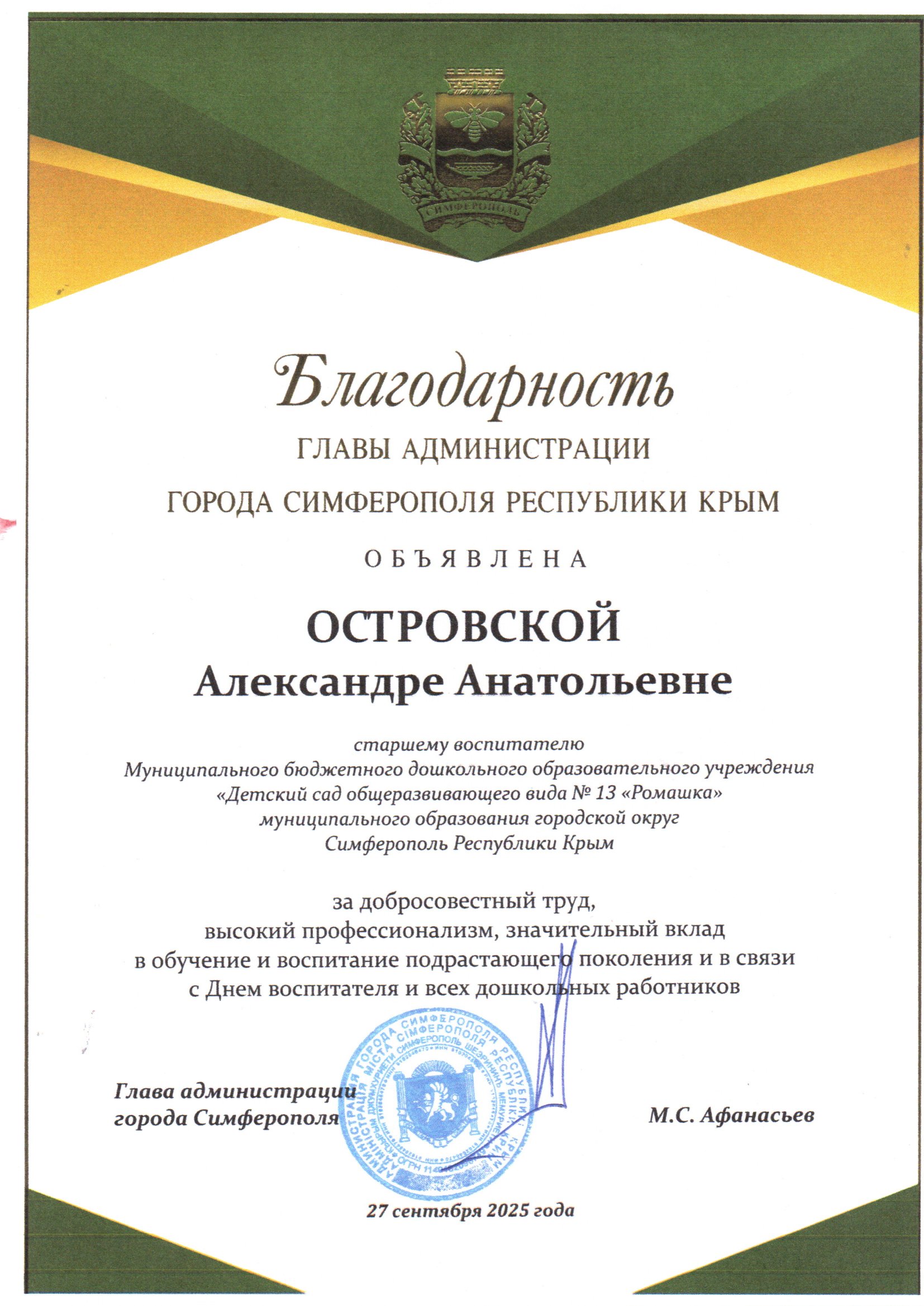 Муниципальное бюджетное дошкольное образовательное учреждение «Детский сад общеразвивающего вида № 13 «Ромашка» Муниципального образования городской округ Симферополь Республики Крым